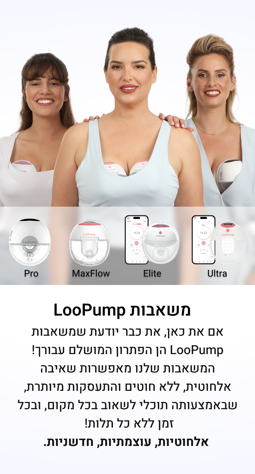 הדגם החדש של שנת 2026- המשאבה האלחוטית שתאפשר לך יותר. בעלת עיצוב חדשני ומיוחד, המאפשר הלבשה יעילה לכל מבנה שד ולכל אישה. שקטה יותר, עוצמתית יותר, חדשנית יותר.