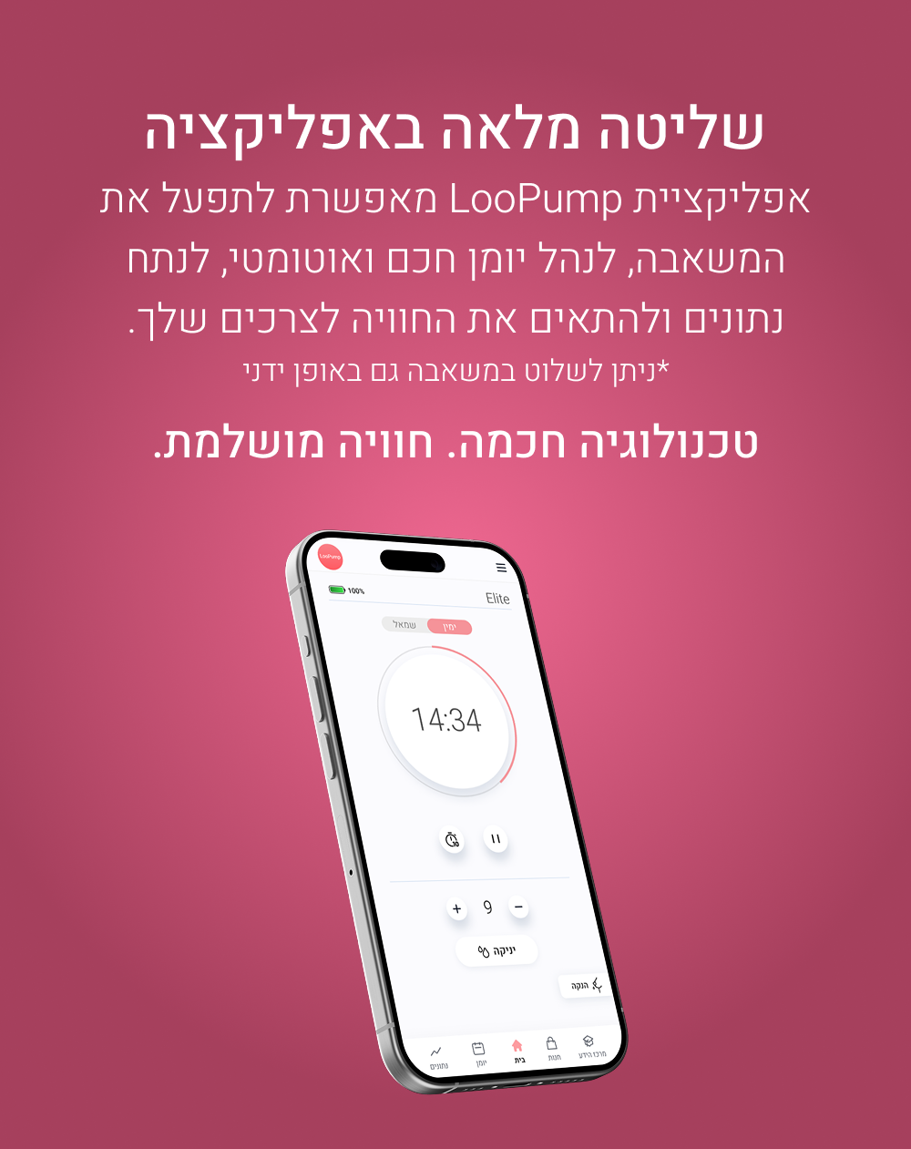 כן! אפליקציית LooPump חינמית, וניתן להוריד אותה גם עכשיו, אם כי עמודים מסוימים באפליקציה רלוונטיים רק לאחר רכישת המשאבה.