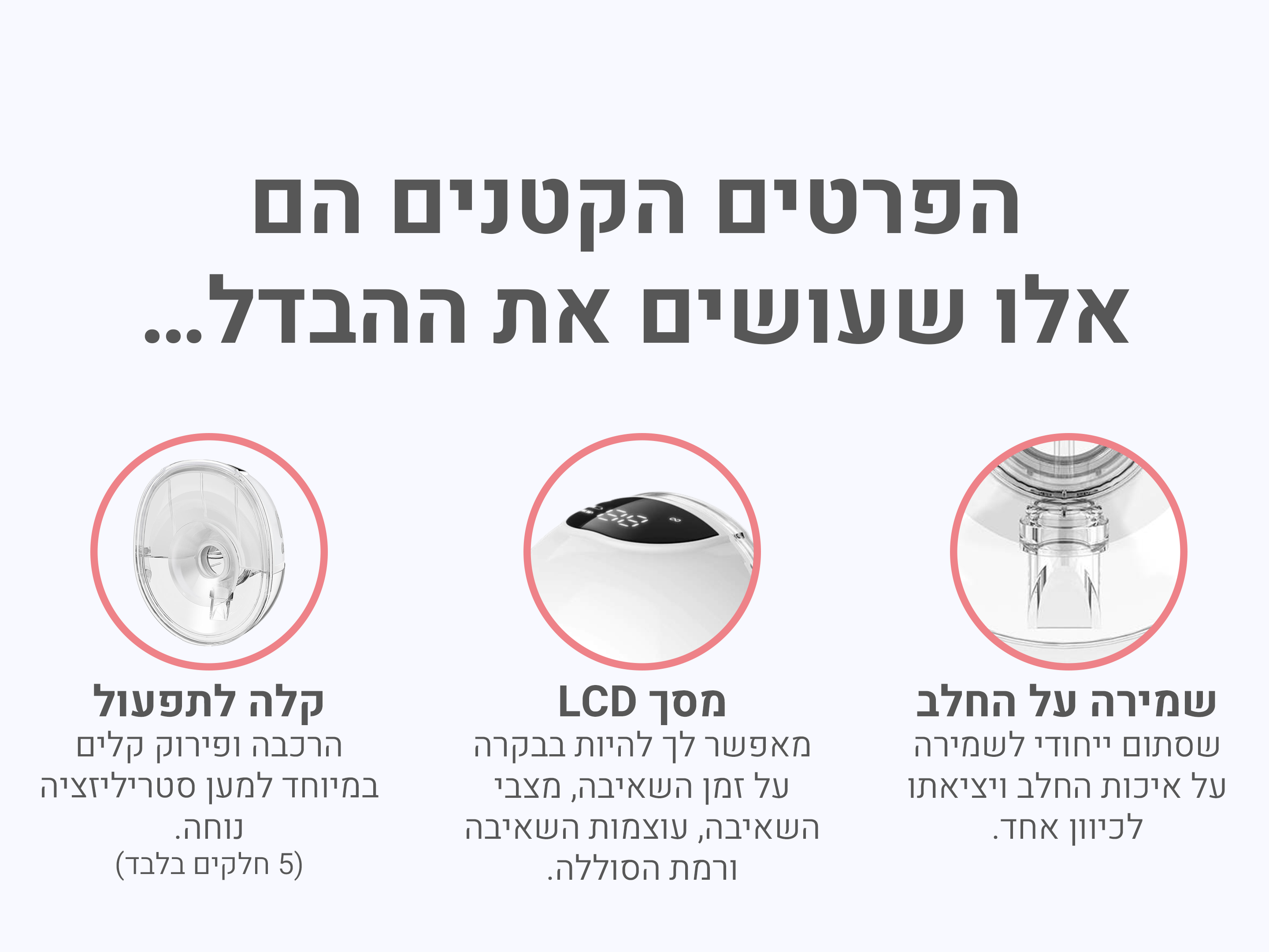 הקפדנו על הנדסת אנוש ויצרנו משאבה בעלת עיצוב אובלי המאפשר את הלבשת המשאבה בחזייה בדיסקרטיות כך שתוכלי לשאוב בכל מקום, בכל זמן וכשהידיים שלך פנויות לעשייה יומיומית.